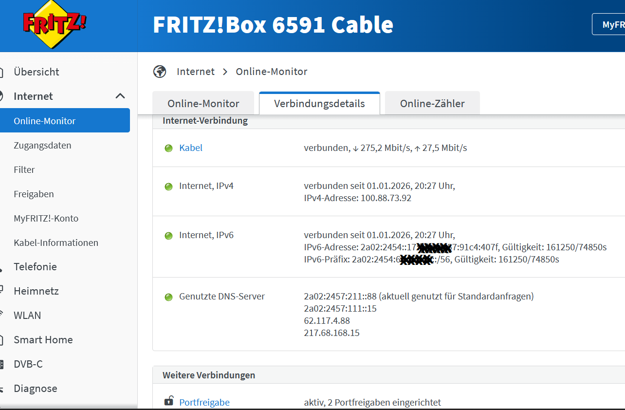 habe ich in meiner Fritzbox 6591 cable alles auf IPv6 umgestellt und viele Versuche gemacht
